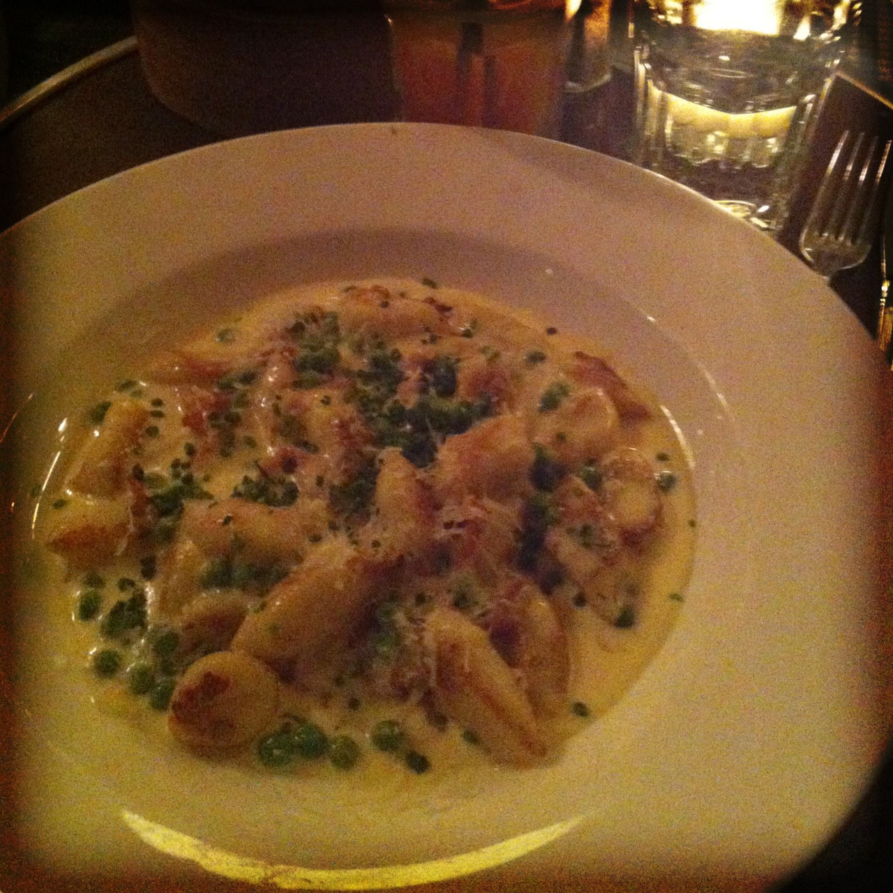 • HOMEMADE PARMESAN GNOCCHI w/ imported speck & peas • BUTTERSCOTCH POT DE CREMEwith creme chantilly & chocolate cookie