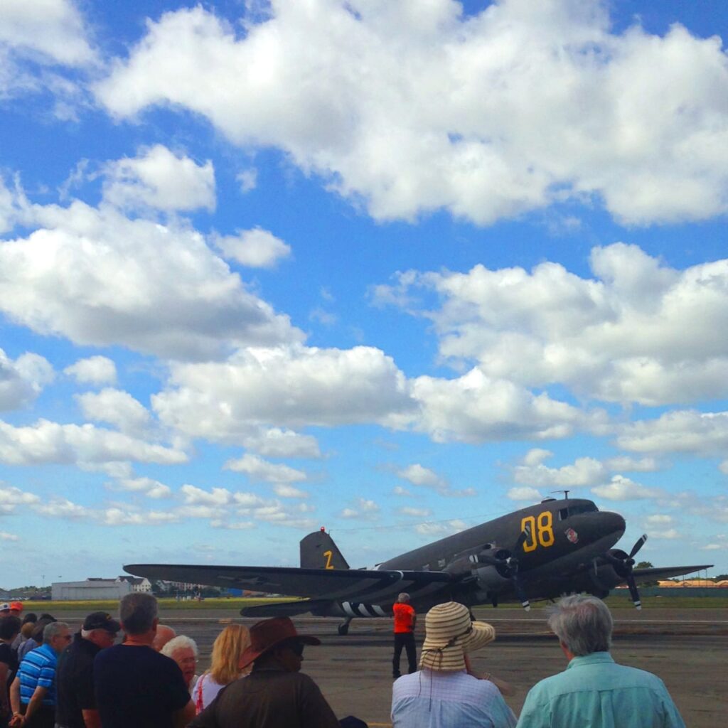 | What a great weekend to experience American Airpower Museum’s (AAM) WWII reenactment by taking the C47 D-day Flight Experience. It was such a thrill to take a fight in such a historic plane, the Douglass C-47 “Skytrain” a.k.a. SECOND CHANCE. So proud to be contributing to the preservation of our US History and honoring those who have fought to protect this country! Highlights include “dressing the part”, speaking with the pilots in the cockpit mid-flight, pretending to do a jump, the scenic view.